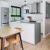 - Au 1er niveau : une chambre et une salle d’eau dès l’entrée, une cuisine ouverte sur une salle à manger, une deuxième chambre (actuellement ouverte sur le séjour) ;