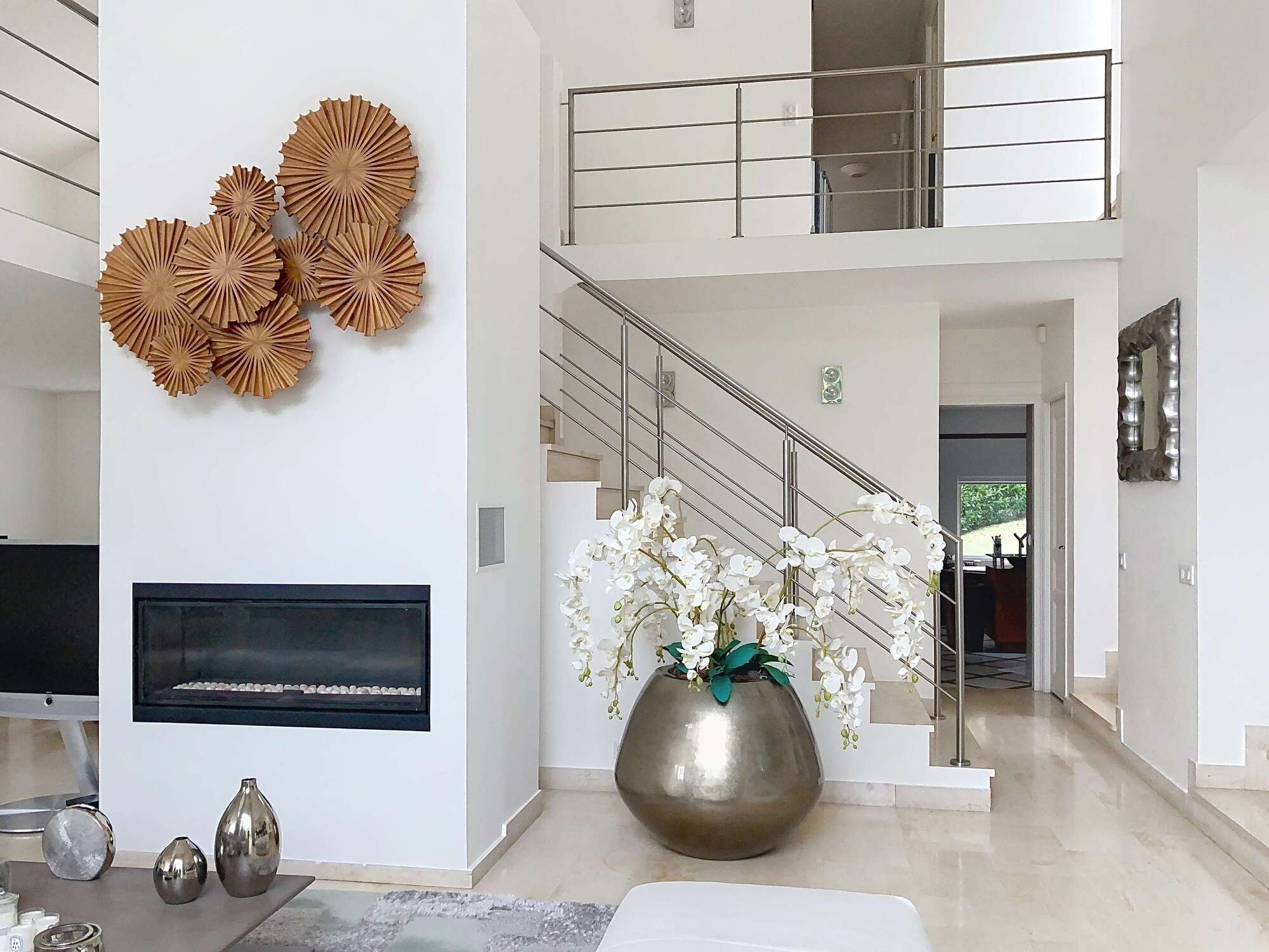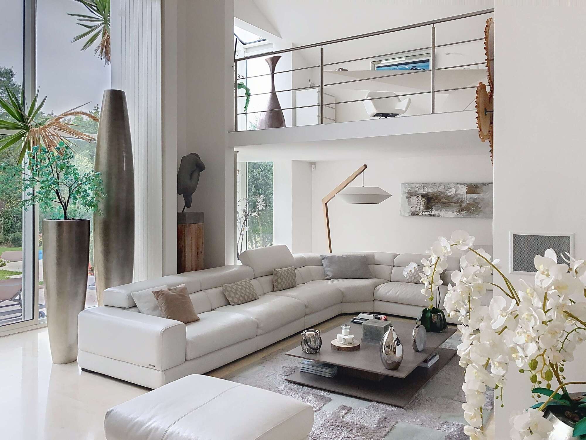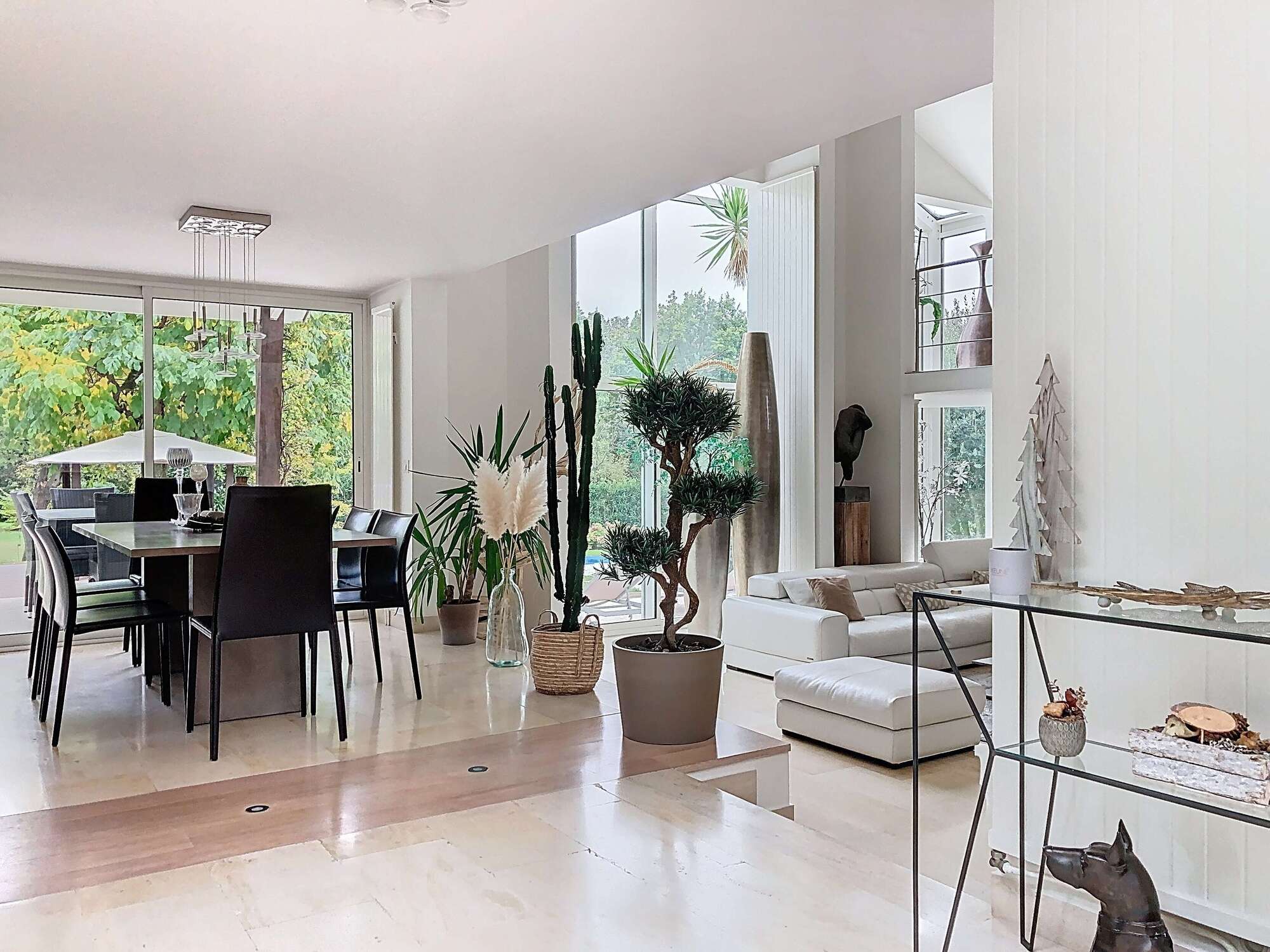 • Le triple séjour cathédrale de 75 m², baigné de lumière et ouvert sur le jardin et son plafond cathédrale incroyable de 8 mètres de hauteur